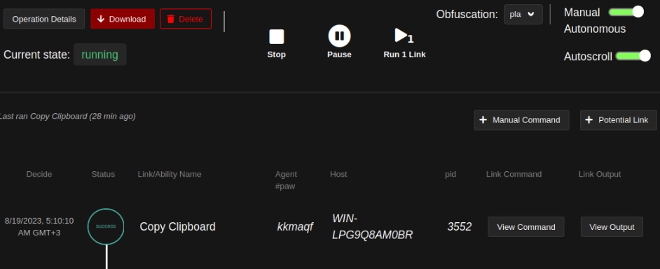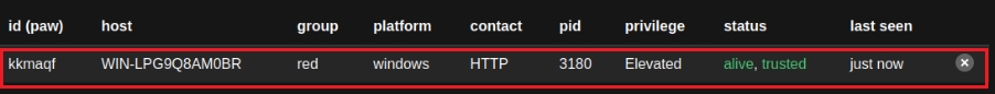 Now we go and look at the Caldera interface and we’ll see the agent appear.