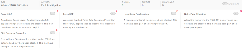 12- Behavior-Based Prevention -> Exploit Mitigation Tab: